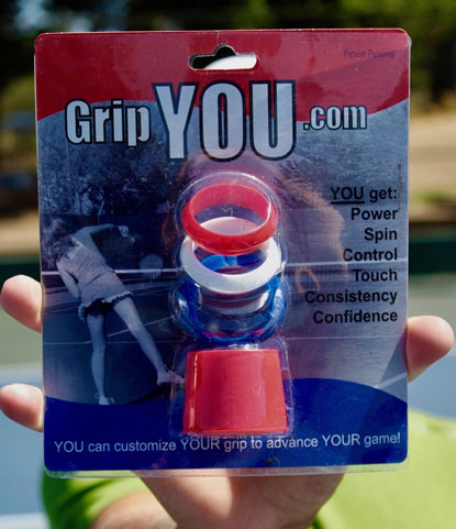 GripYOU enables you to snap through forehands using your index finger over the grip-ring for more control and racquet head speed - the result is more ball spin and a more confident ball strike. Some users implement two grip-rings for backhand positioning and comfort. Grip-n-Rip, nice!